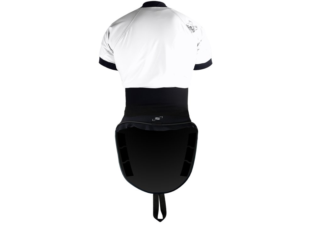 Speciálně navržený střih umožňuje maximální mobilitu bez kompromisů na ochraně. Zesílená špricdeka je odolná vůči oděru, zatímco silikonové protiskluzové pruhy na spodní straně zajišťují pevné uchycení na lodi i v intenzivním kayak crossu.