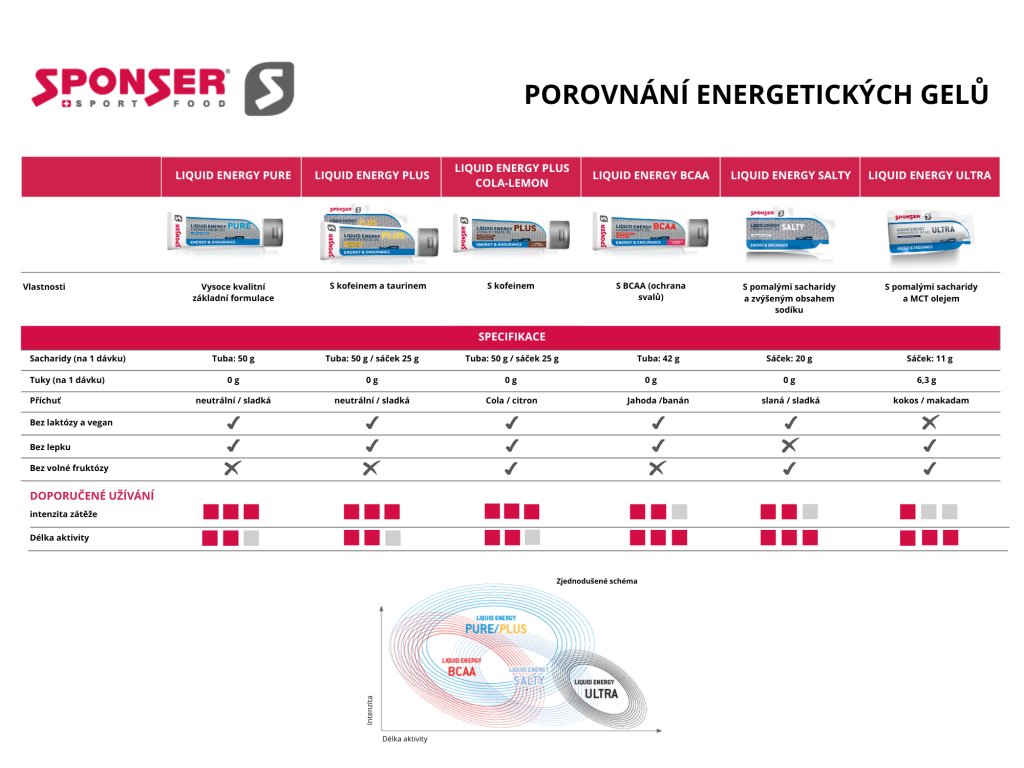 SPONSER LIQUID ENERGY SALTY je vysoce koncentrovaný energetický gel se sodíkem a draslíkem. Poskytuje tělu rychle (glukóza) i pomaleji vstřebatelné (isomaltulóza, hydrolyzát ječmenného škrobu) sacharidy potřebné k dodání energie.