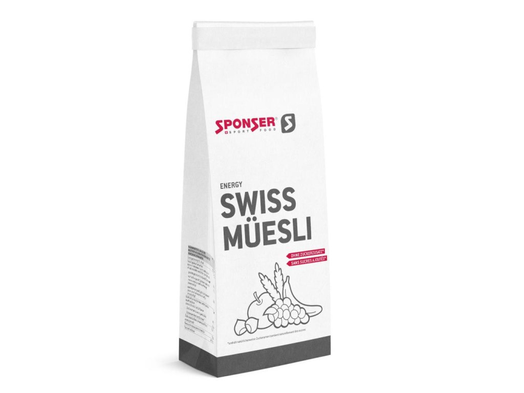 SPONSER SWISS SPORT MÜESLI jsou kvalitní celozrnné cereálie s rostlinnými bílkovinami, sušeným ovocem a ořechy, bez přidaného cukru. Základ Swiss Müesli tvoří mix ovesných vloček s ořechy a ovocem.